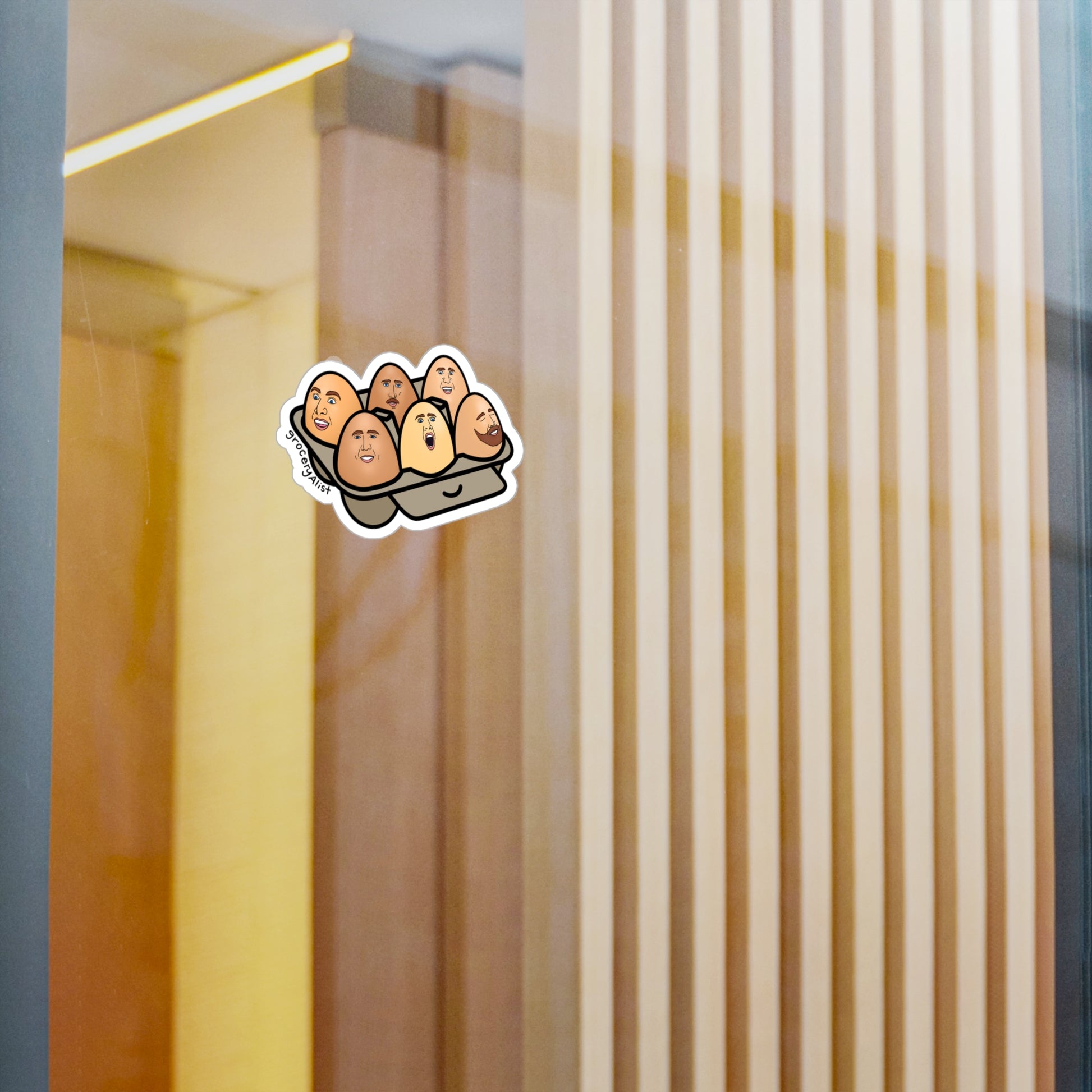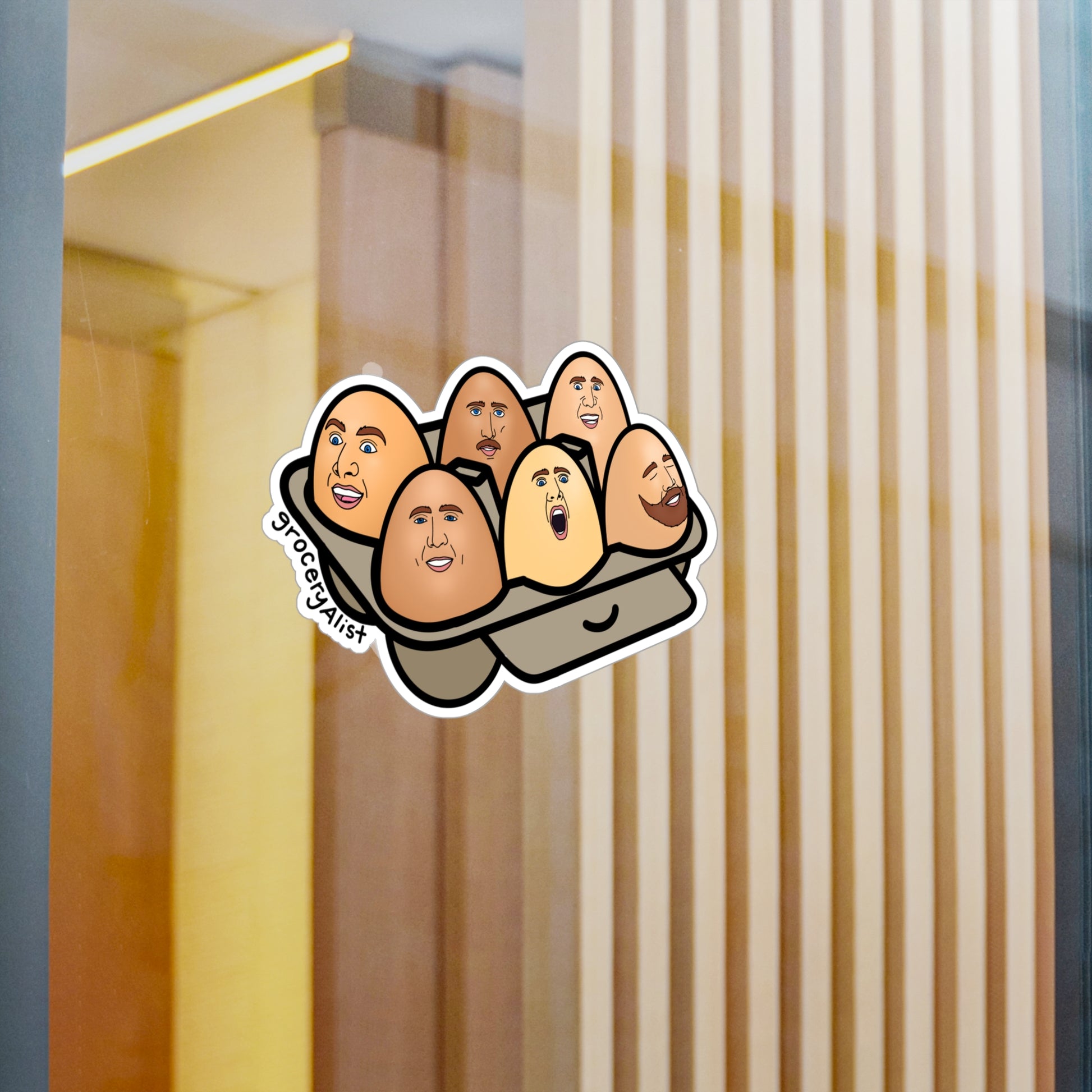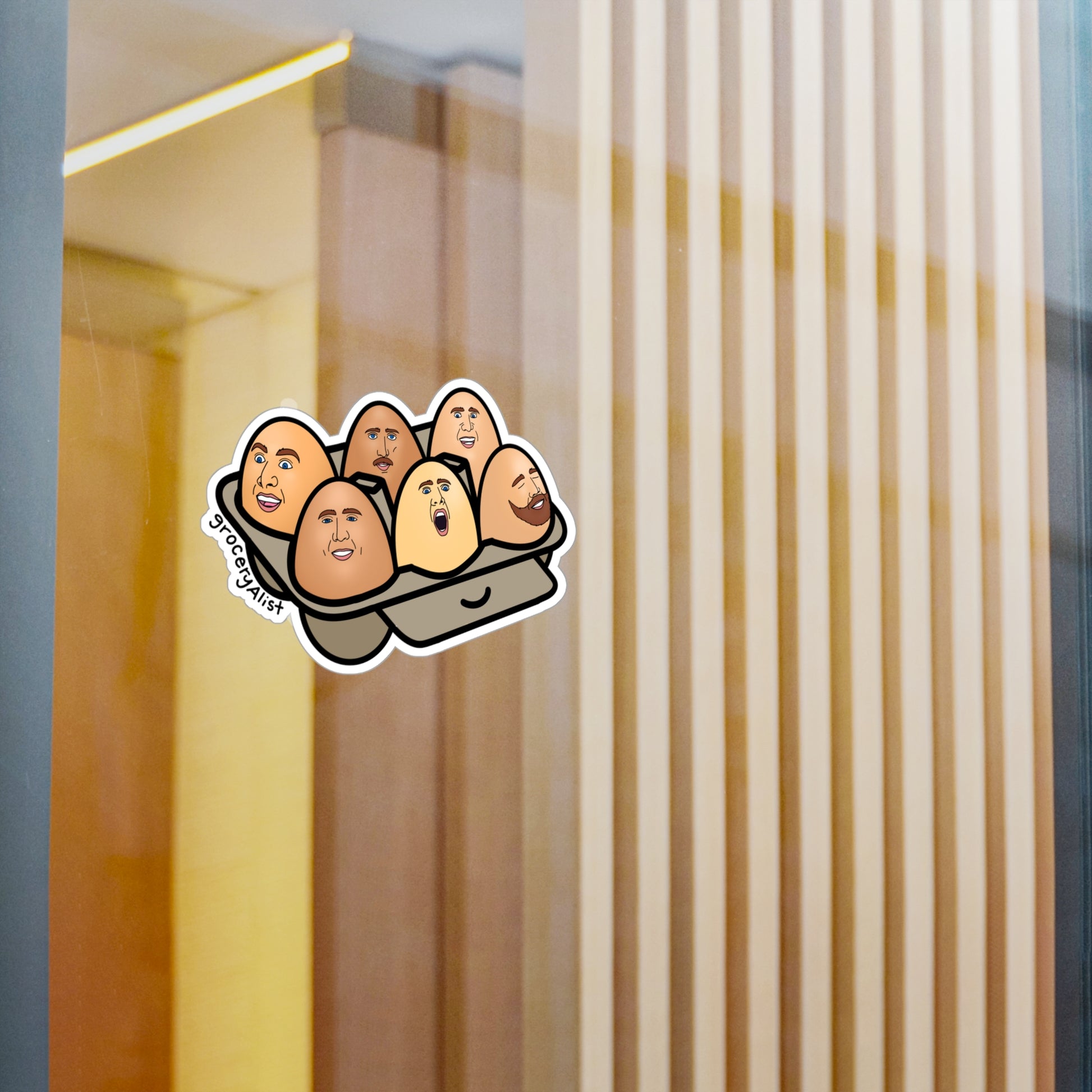 Nicolas Cage-Free Eggs Vinyl Sticker | Funny Celebrity Food Pun | Famous Actor Wordplay Decal