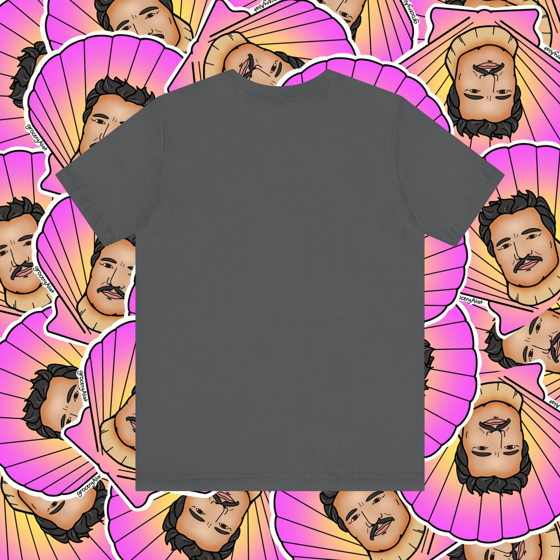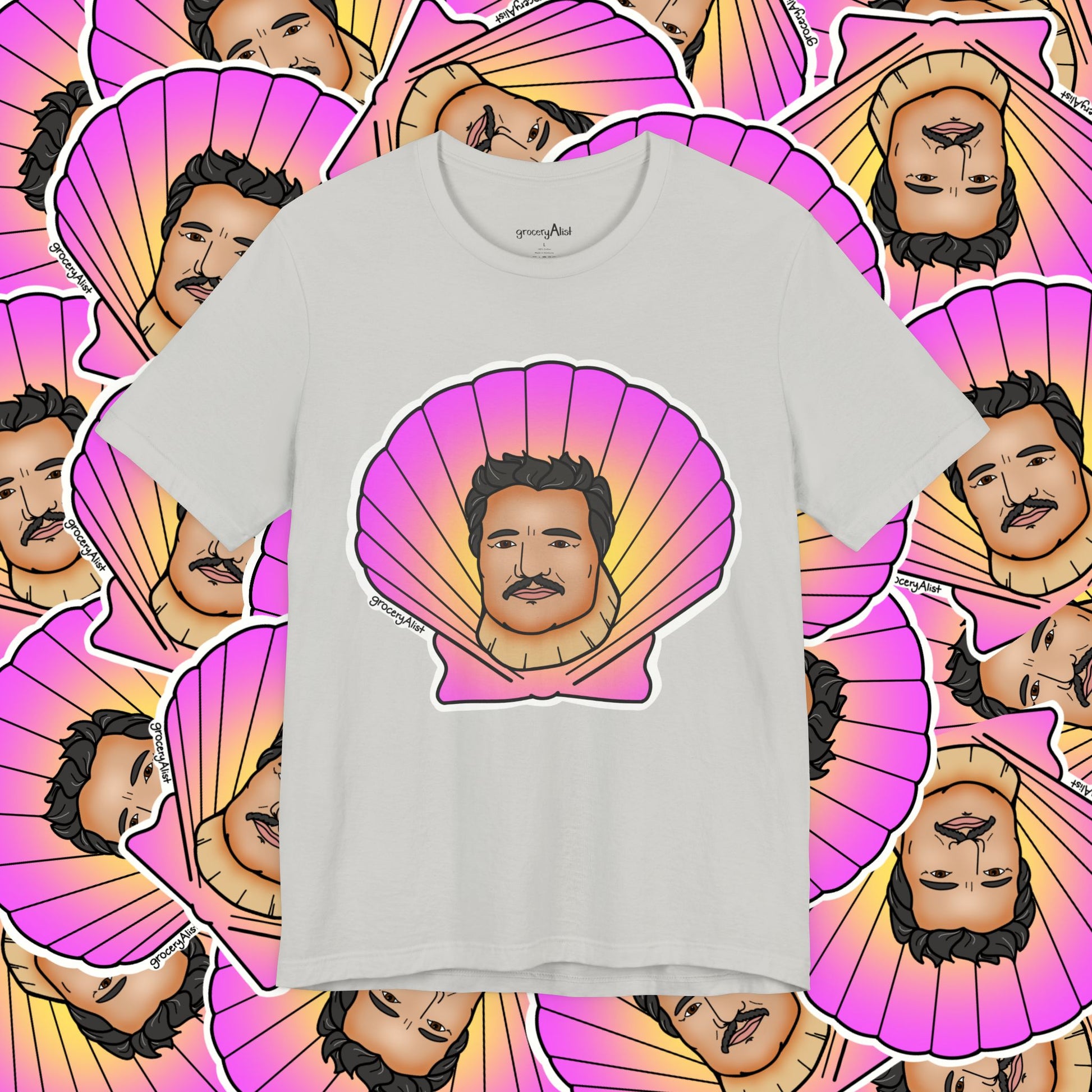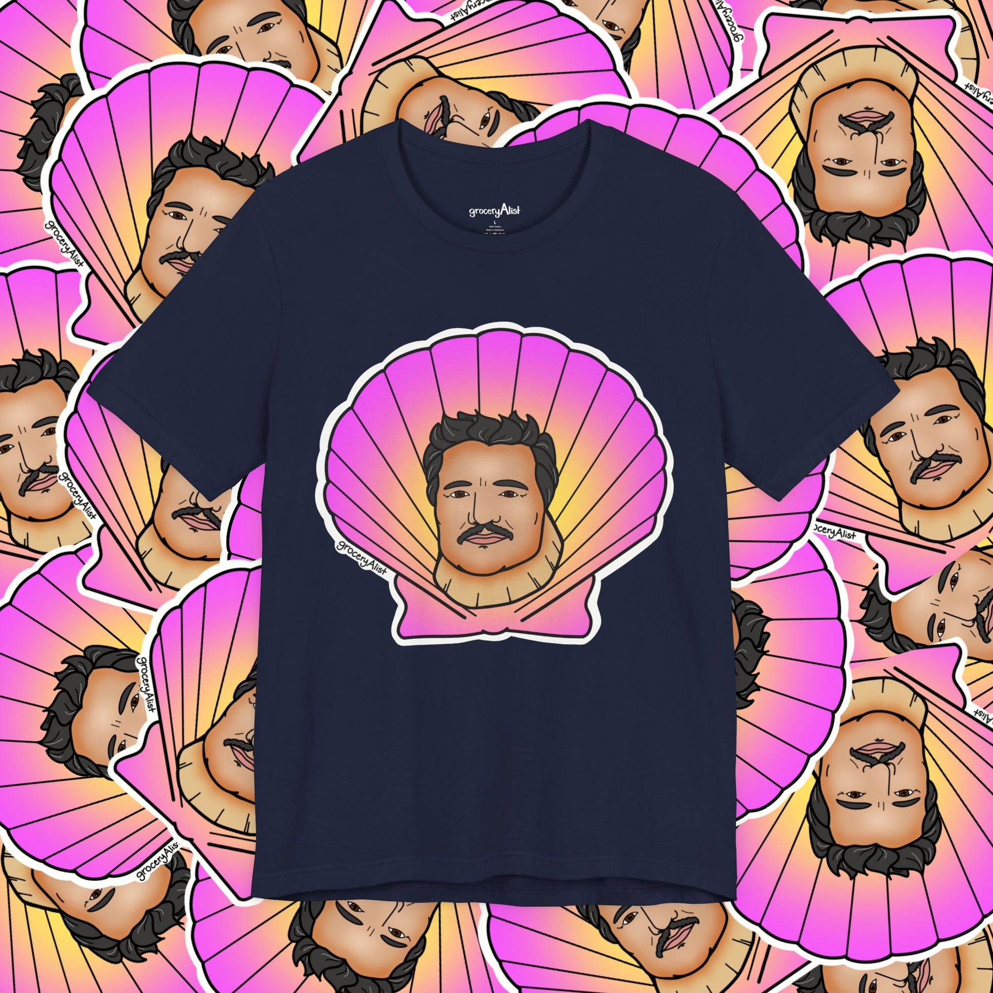 Pedro Pascallop T-shirt Full Front | Celebrity Food Pun T-shirt | Famous Actor Dad Joke Shirt