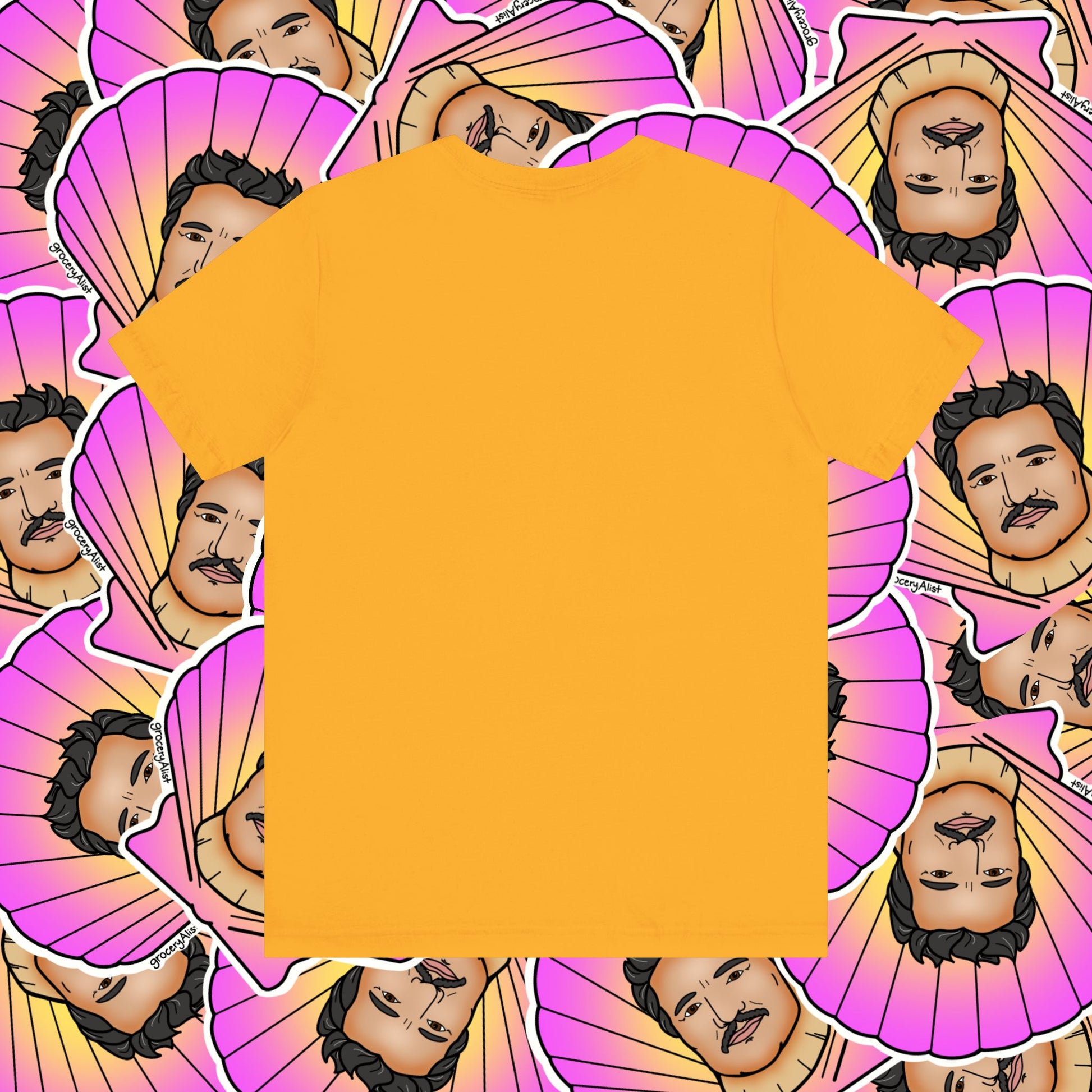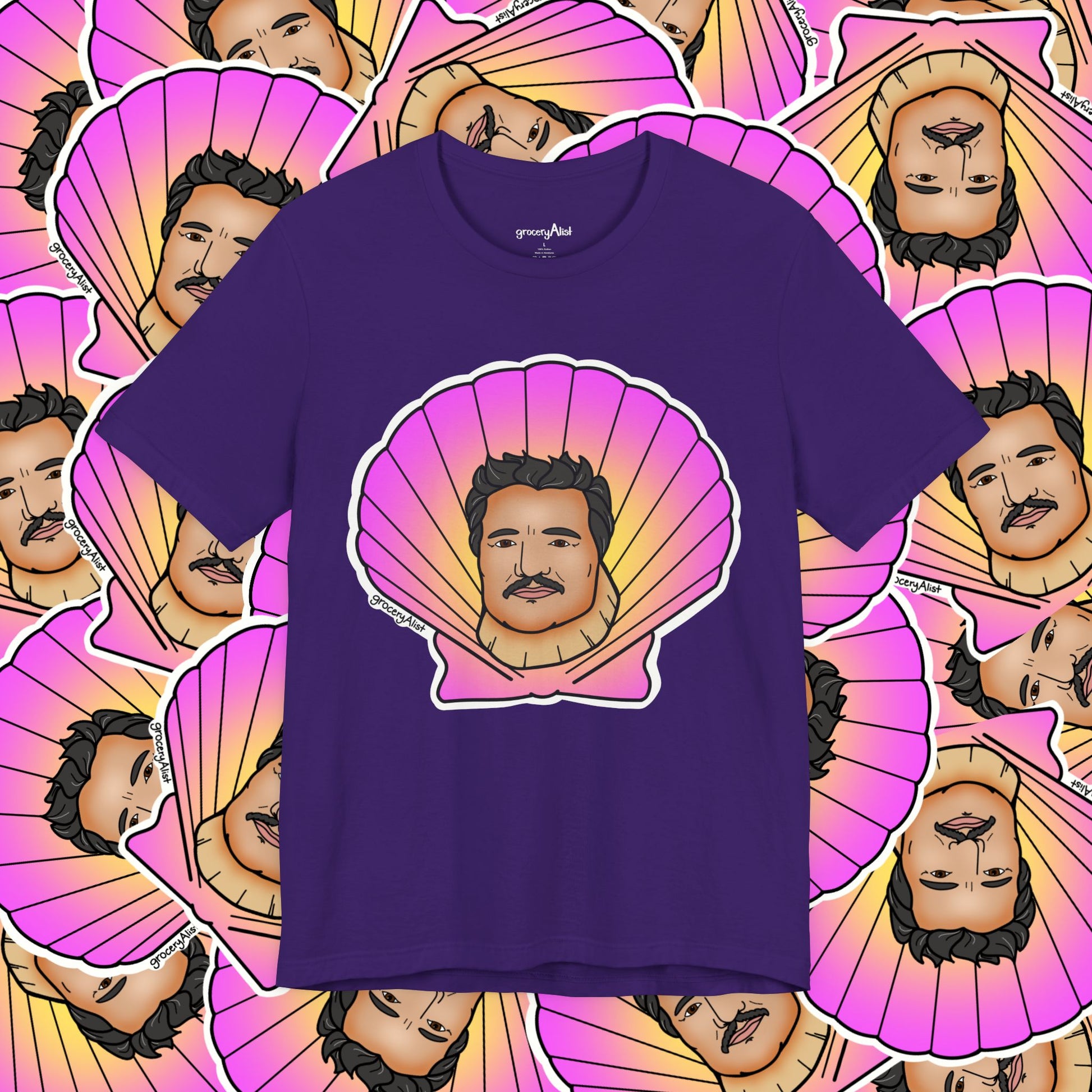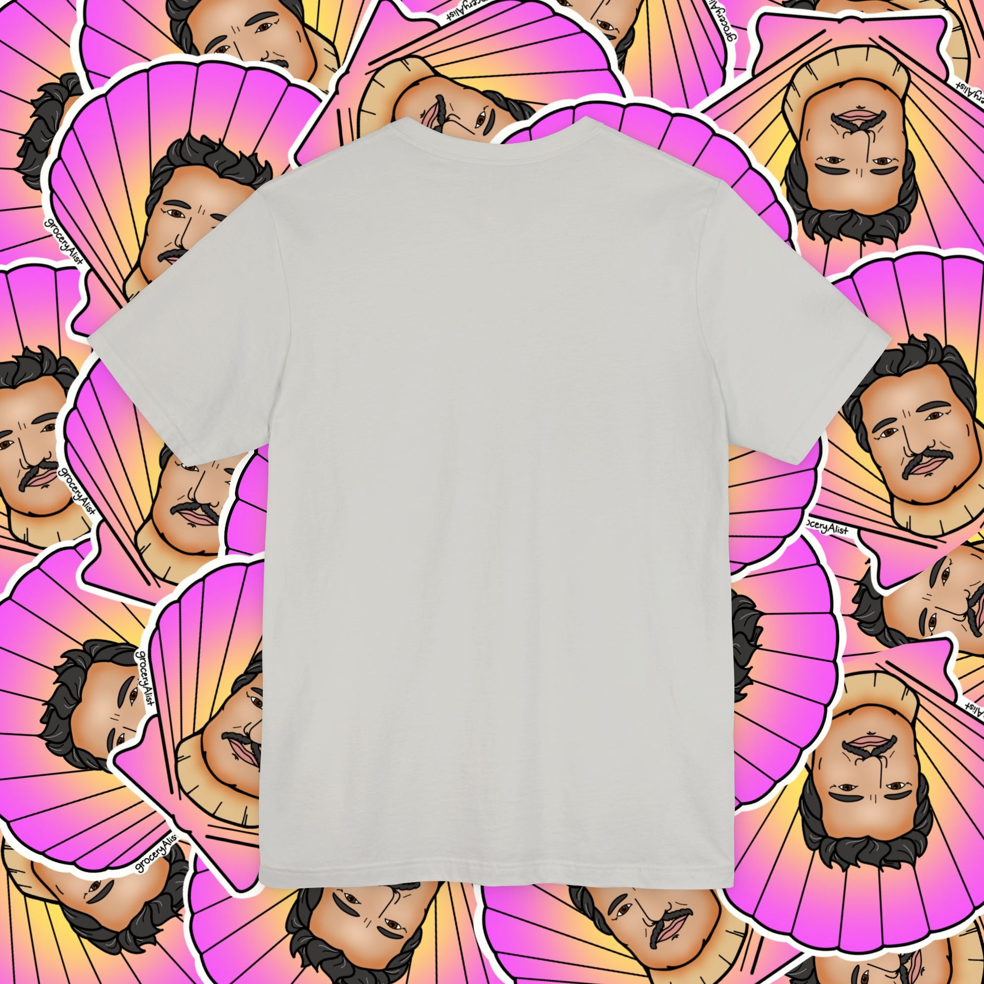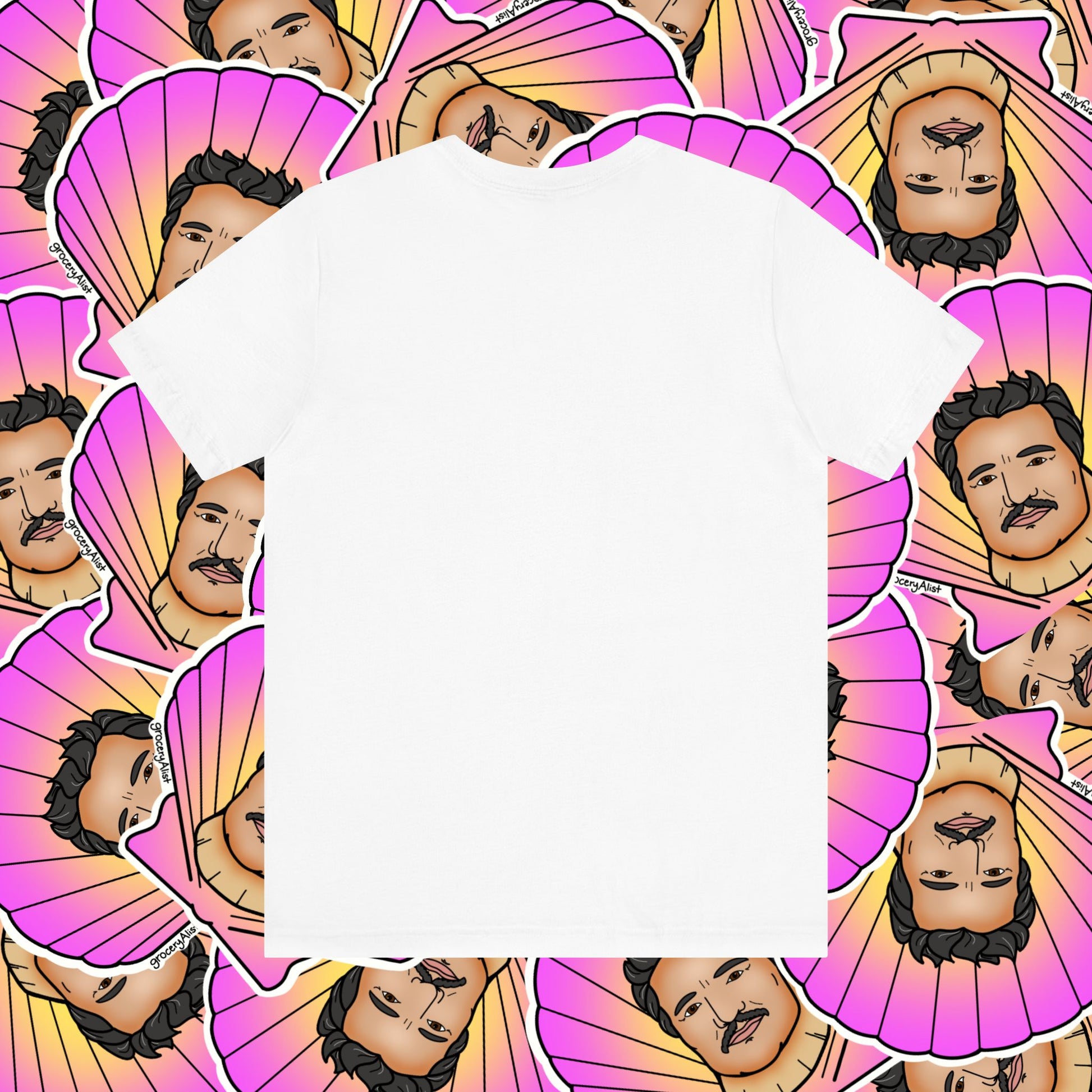 Pedro Pascallop T-shirt Full Front | Celebrity Food Pun T-shirt | Famous Actor Dad Joke Shirt
